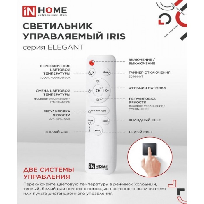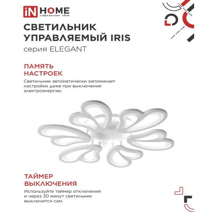 Светодиодные люстры с пультом управления - отличное решение для основного освещения помещения в доме или квартире. Основание из стали и плафоны из акрила делают люстры ELEGANT IRIS прочными и долговечными. Мощность светильника - 120 Вт. Светодиоды SMD нового поколения обеспечивают яркий световой поток в 8400 Лм. Степень защиты IP40 гарантирует безопасность и надежность. С помощью пульта дистанционного управления вы можете менять цветовую температуру от 3000К (Теплый свет) до 6500К (Холодный свет) и регулировать яркость освещения люстры. Так же изделие обладает функцией ночника, с помощью которого можно создать мягкое освещение и приятную расслабляющую атмосферу. С помощью таких функций вы с легкостью сможете подобрать цвет и яркость под своё настроение, время суток или под конкретные задачи. Светодиодная люстра имеет накладное крепление, которое подойдет под все виды потолков: бетон, гипсокартон, натяжные и деревянные потолки. Светильник рассчитан для больших комнат площадью до 34 кв. метров. Срок службы – не менее 30 000 часов. Гарантия 2 года.
