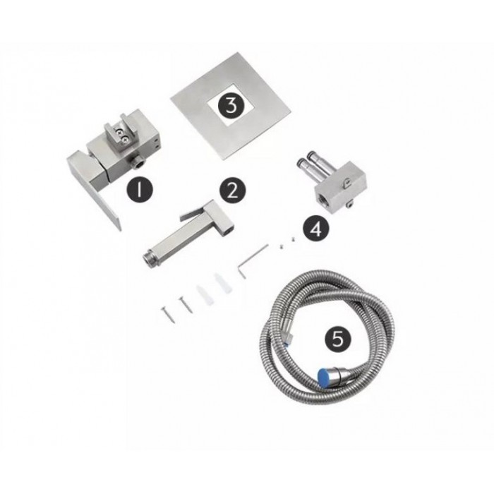 В комплекте душевой шланг 150 см, биде лейка, комплект отражателей