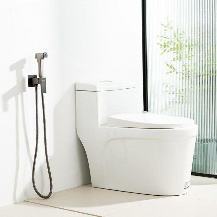 В комплекте - Душевой шланг 120 см, С гигиеническим душем, Держатель лейки