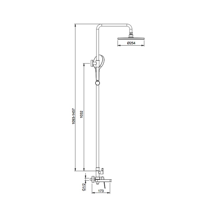 Комплектация - смеситель, душевая стойка, верхний душ, душевая лейка, душевой шланг, держатель для душевой лейки, настенный держатель, отражатели, эксцентрики