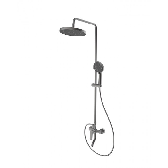 Душевая стойка Splenka S50.24.09 - функциональная модель оснащена однорычажным смесителем с фиксированным изливом, тропическим душем и трехрежимным ручным душем. Душевая стойка выполнена из высококачественной латуни в цвете графит с матовой поверхностью, верхний и ручной душ выполнены из ABS-пластика. Однорежимный верхний душ оснащен механизмом регулировки угла наклона. Переключение режимов работы с излива на ручной или тропический душ происходит путем поворота переключателя. Высота душевой стойки регулируемая.